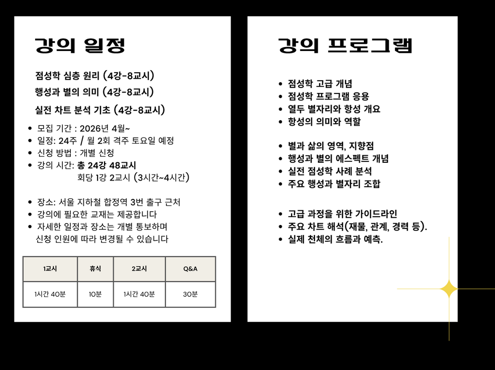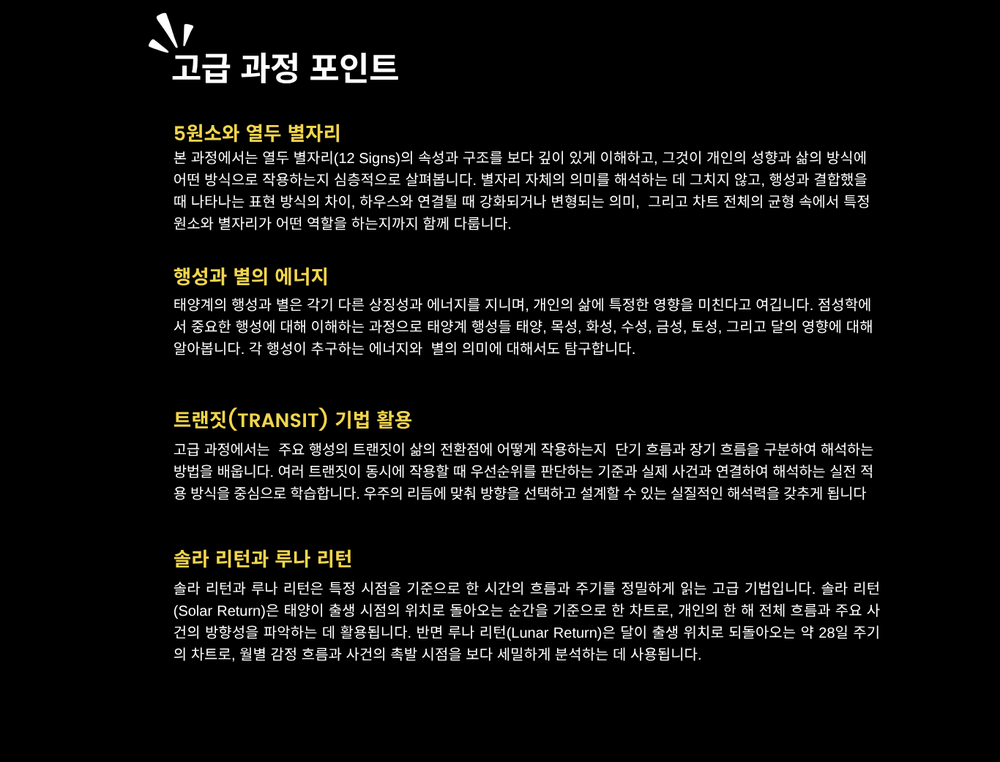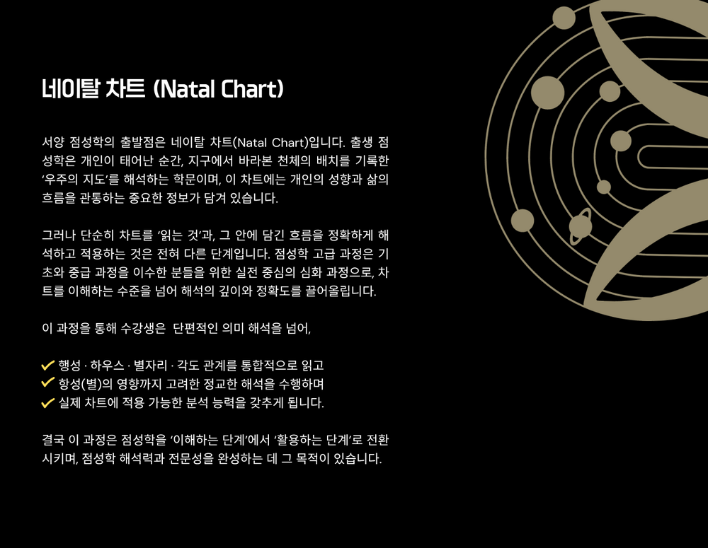 본 과정은 체계적이고 깊이있는 점성학 공부를 위한 고급 과정입니다.