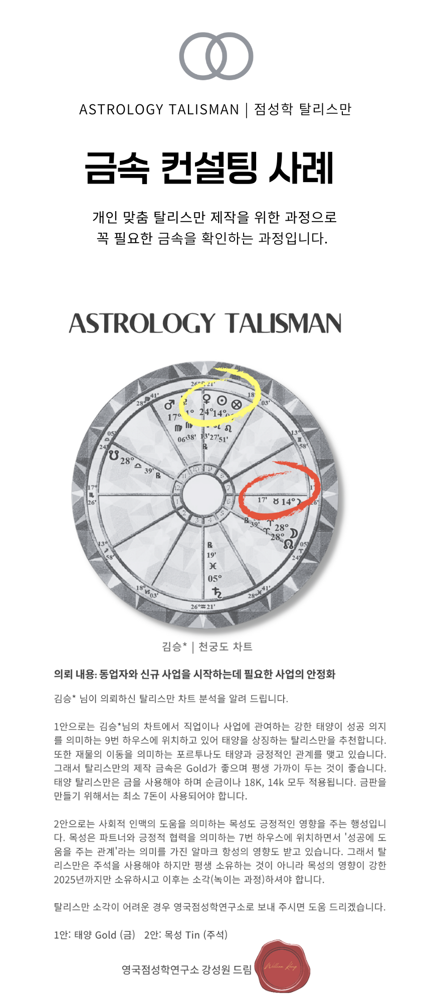 3. 영국점성학연구소 비용 (탈리스만 관련 차트상담+탈리스만 디자인+점성학 일렉션+정화의식)
