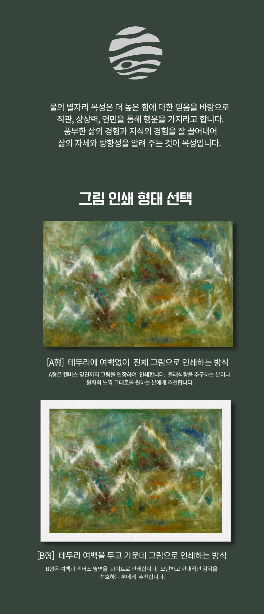 영국점성학연구소 강성원 소장이 직접 그린 그림을 캔버스에 인쇄하는 주문 제작 상품입니다. 목성이 긍정적인 영향을 준 시간에 그린 그림으로 캔버스 액자 뒷면에 소유자에게 도움이 되는 보호부 인장을 직접 그려 보냅니다.